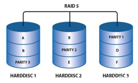 缺点:只允许单盘故障,一盘出现故障得尽快处理。有盘坏情况下,raid5 IO/CPU性能狂跌,此时性能烂到无以复加。