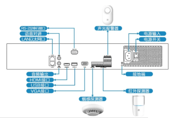 适用于大型监控网络规划,通过LAN1和LAN2配置不同网段,用于IPC的分组,区分不同区域放置的IPC(例如监控点超过254个,C类IP地址一个网段不够使)。【32路DS-7932N-R4 】